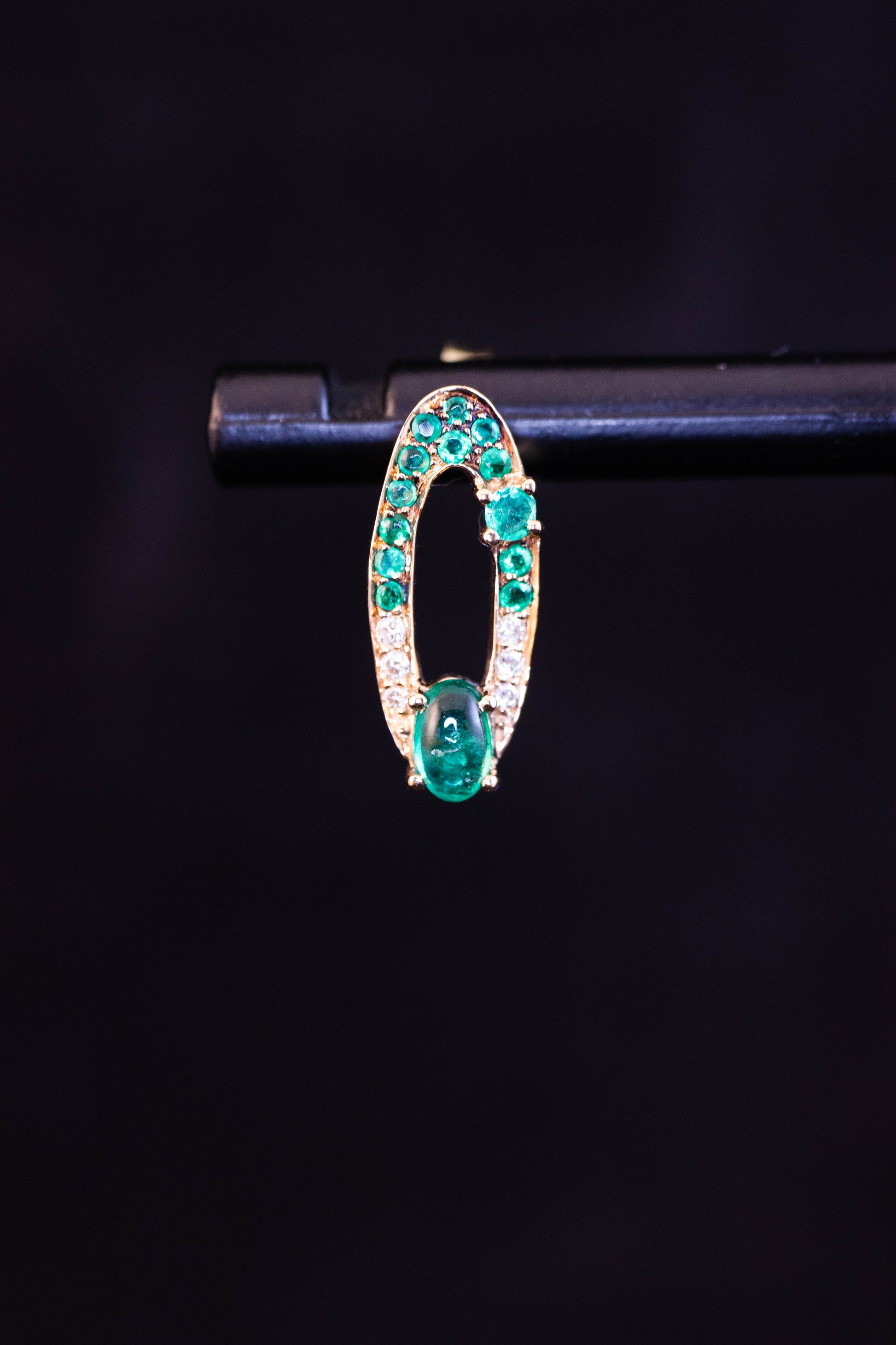 18k yellow gold stud earrings set with diamonds and emeralds.