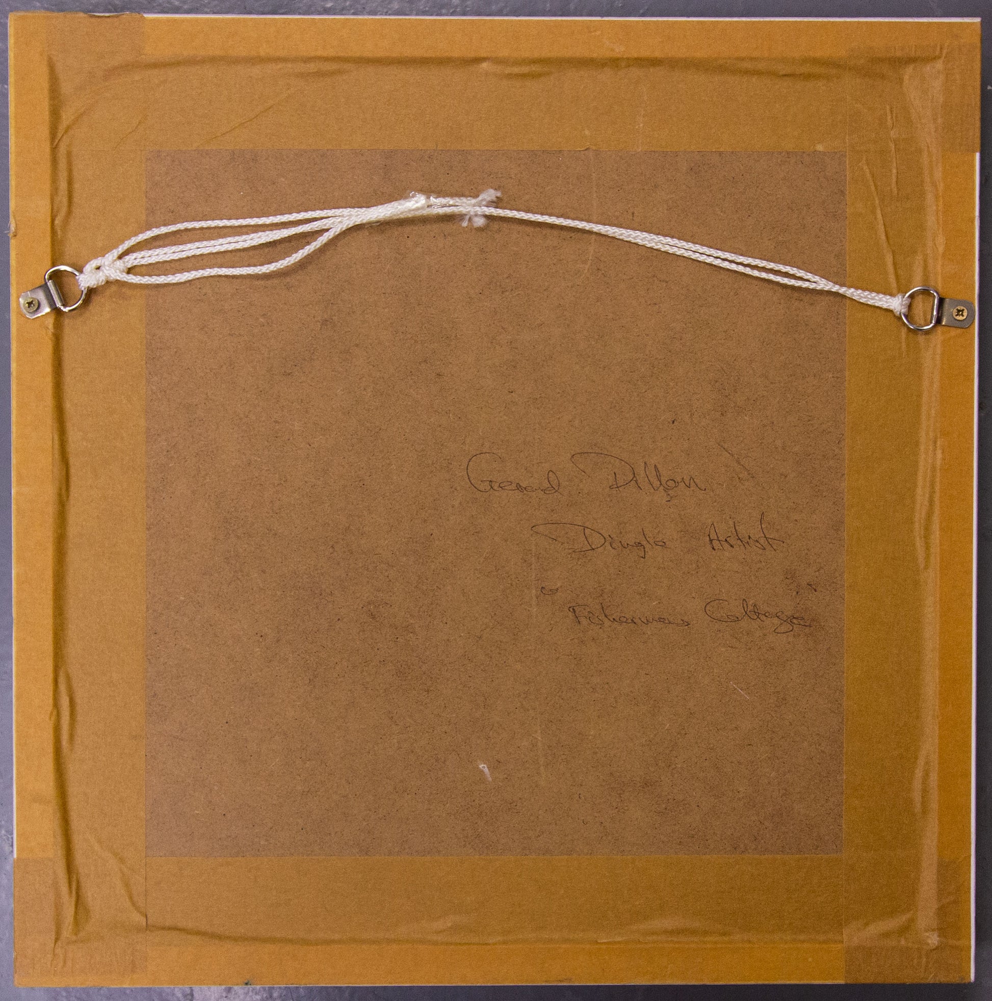 Gerard Dillon Fishermans Cottage, Blasket Islands oil painting on canvas. The frame measures 36w x 36h in cm, the painting measures 19w x 19h in cm.