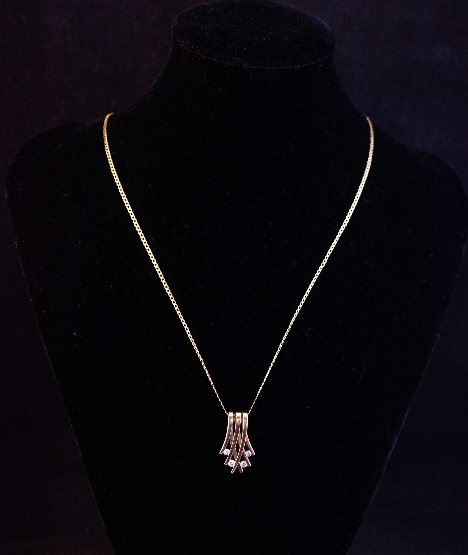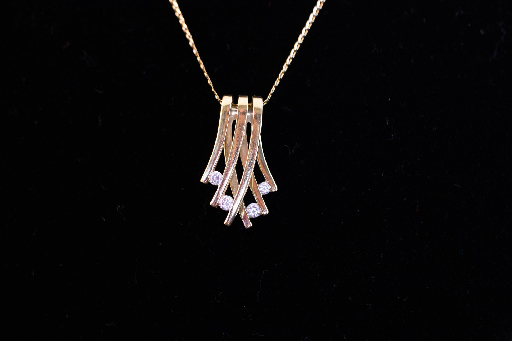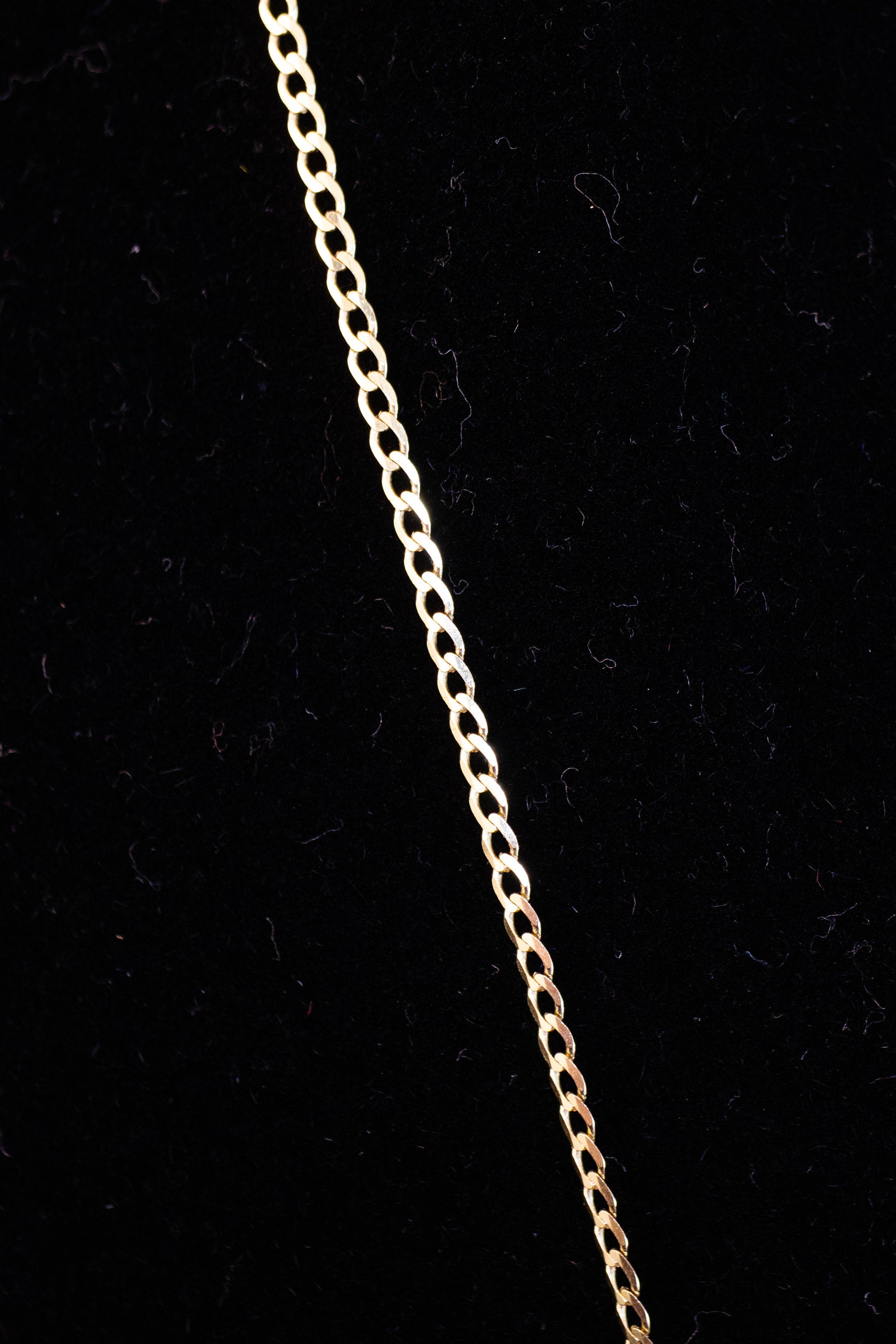 9k yellow gold pendant necklace with flat link chain. Total chain length 44cm long, please note, stones are not diamond.