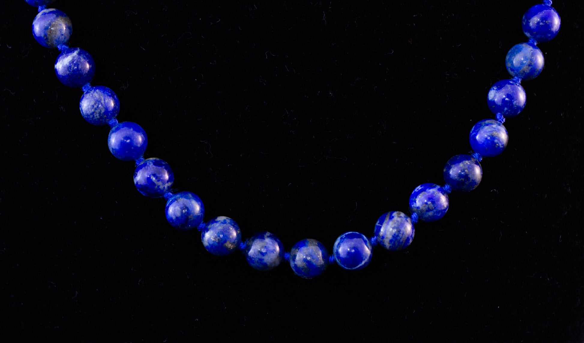 Nice lapis lazuli stone necklace. This necklace measures 44cm long.