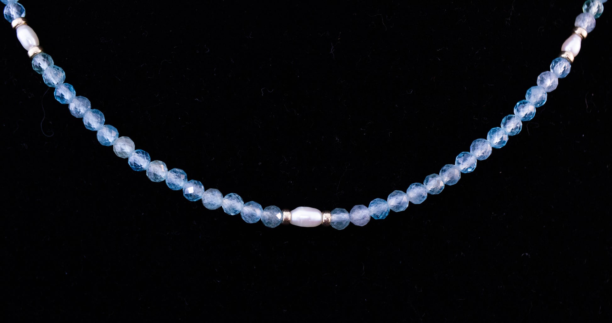 Light blue apatite and pearl necklace. This necklace measures 38cm long