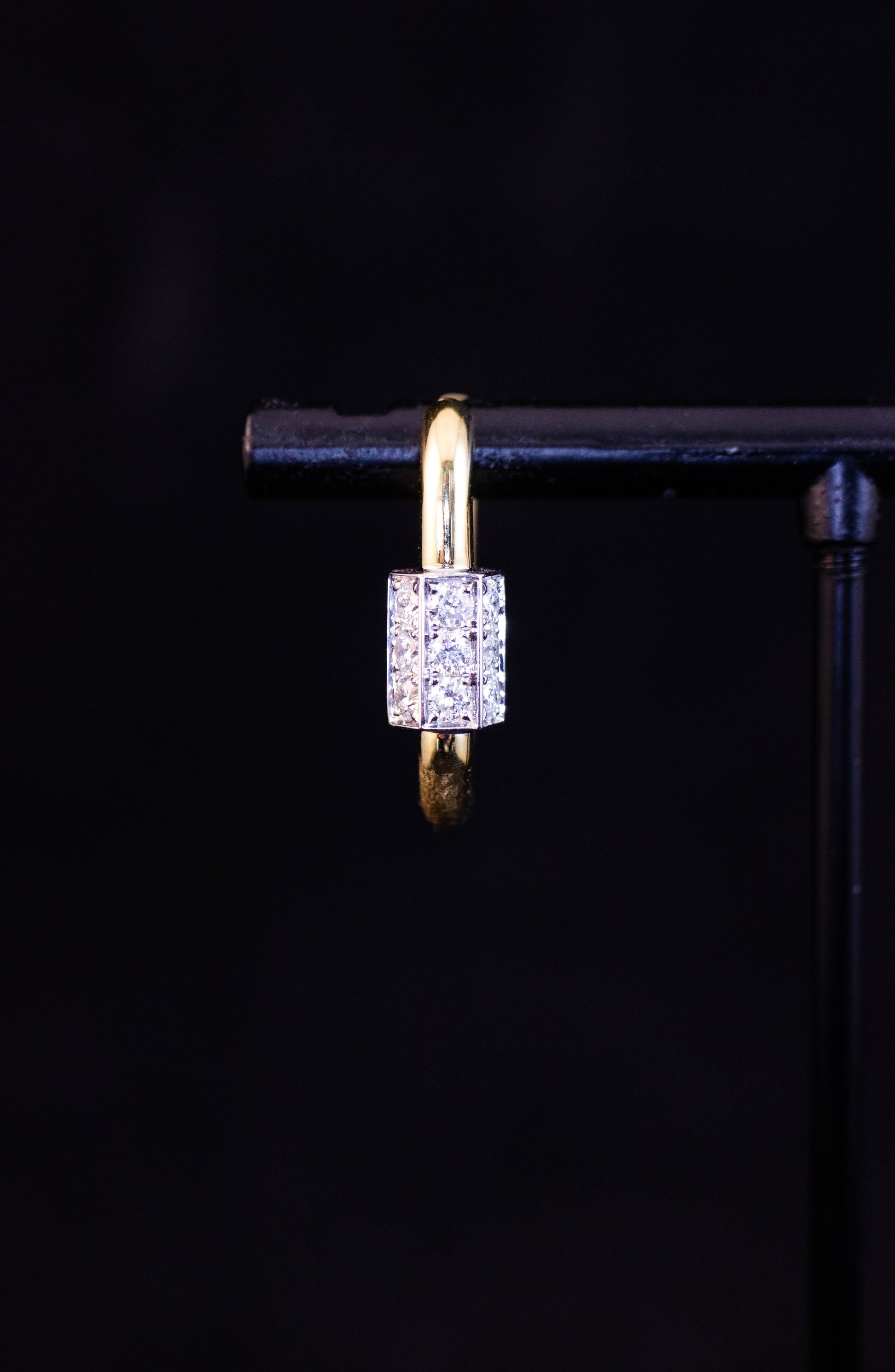 Pair of modern 18k yellow gold and diamond shaped hoop earrings. Total diamond content 1.10ct, 20mm diameter.
