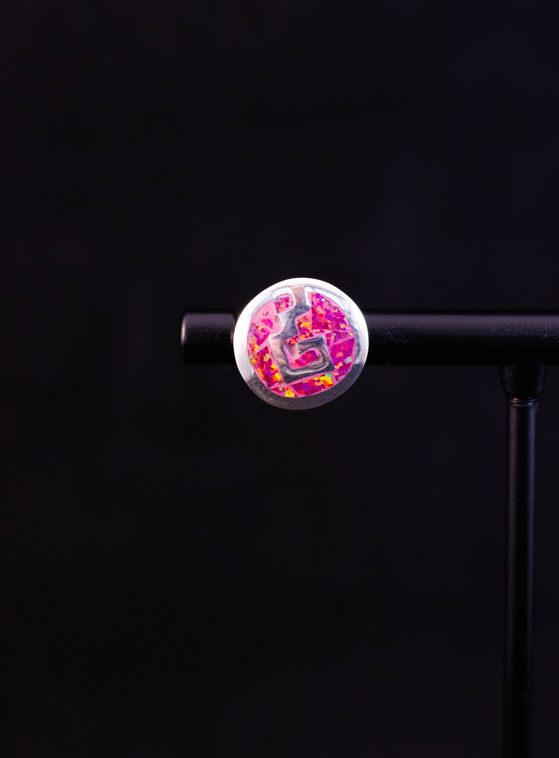 Silver and pink opal round stud earrings. They measure 12mm in diameter.