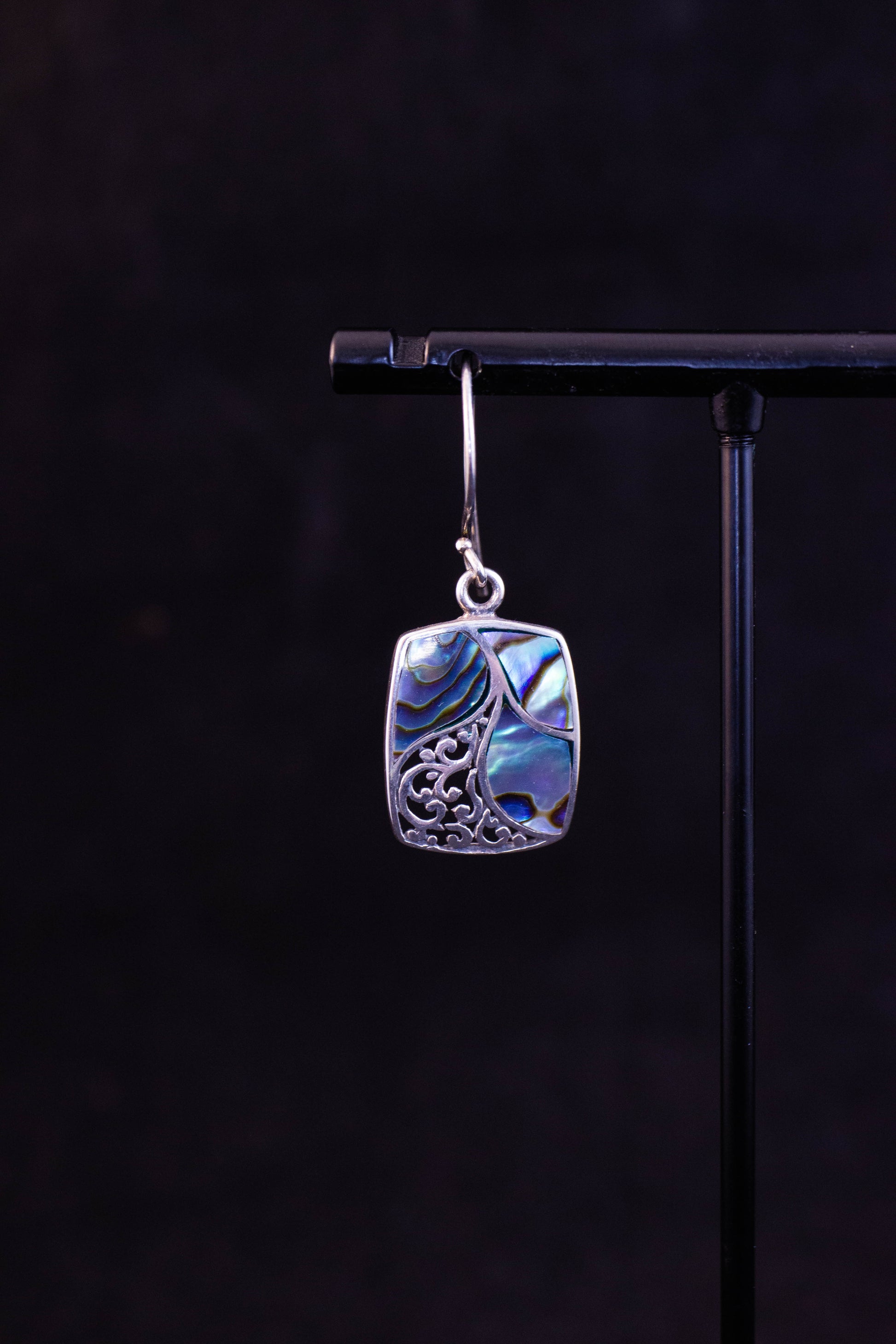 Silver and mother of pearl dangle earrings in rectangle shape. Measure 35mm drop