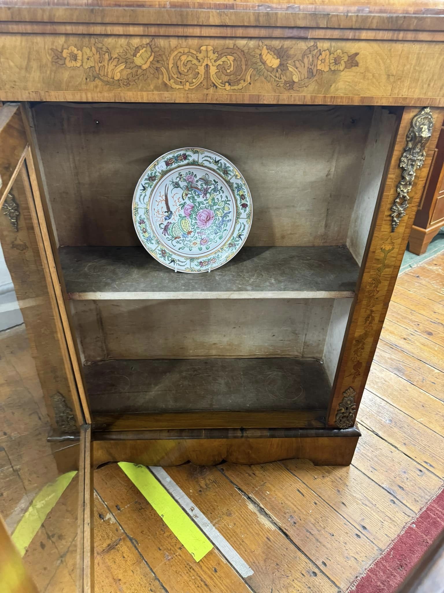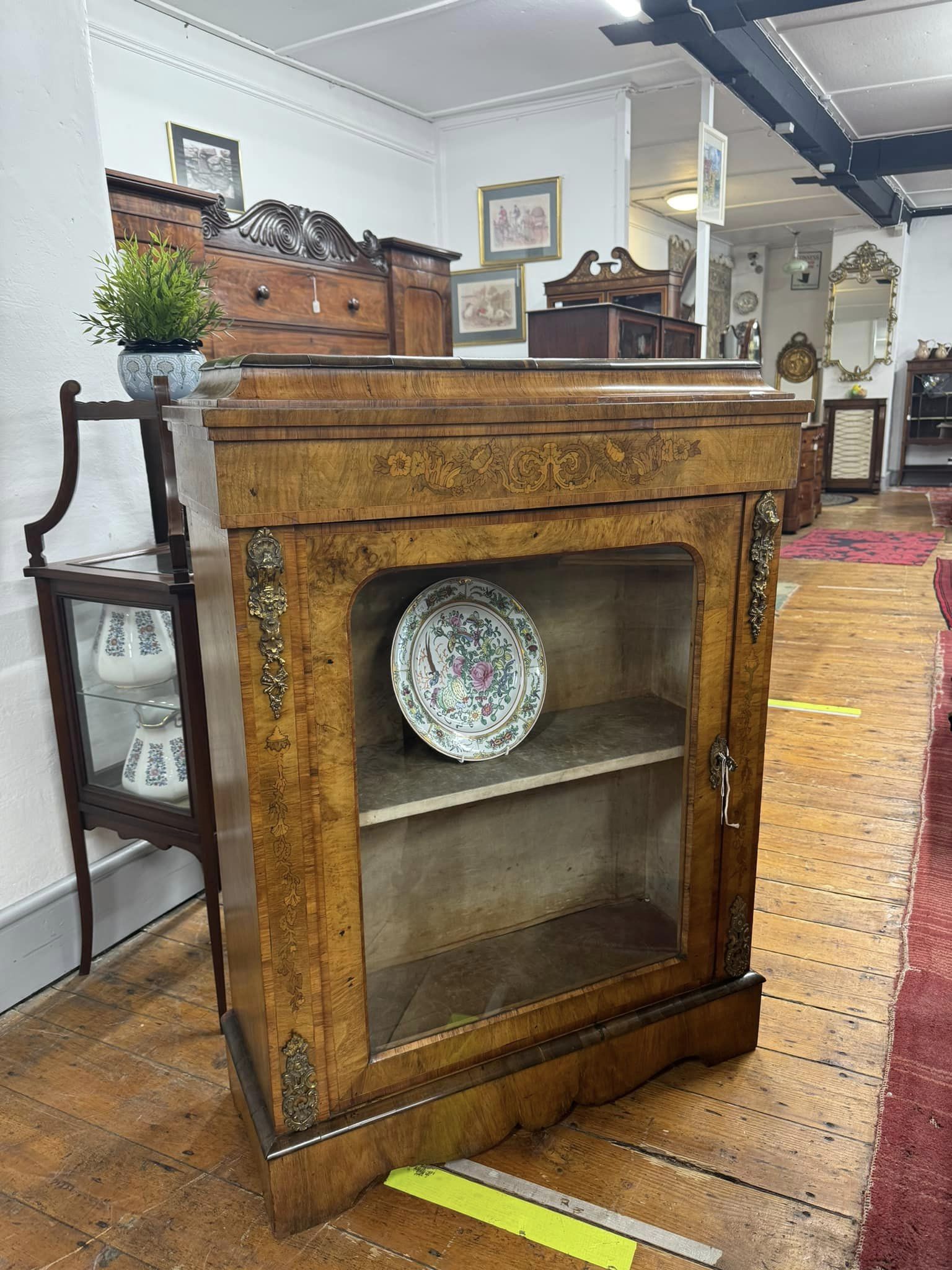 Inlaid Walnut Pier cabinet with lined interior and brass mountings throughout.