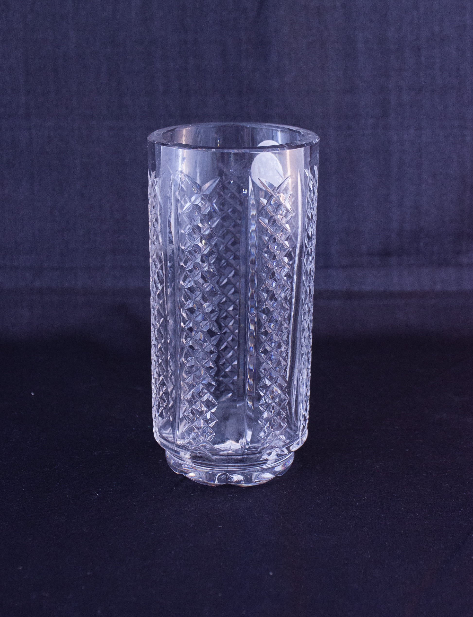 Waterford Crystal column shaped vase. This measures 15.5H x 7.5W in cm.