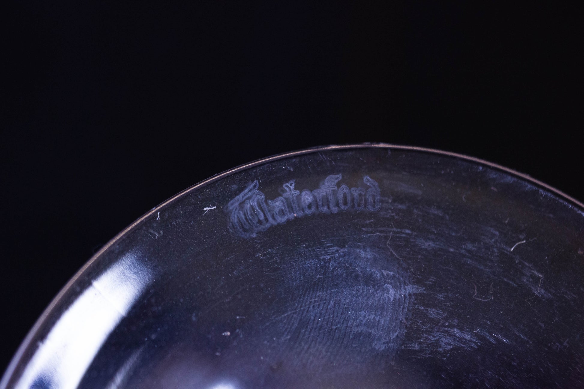 Set of six Waterford Crystal Alana pattern white wine glasses. Measuring 15H x 8W in cm